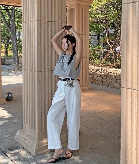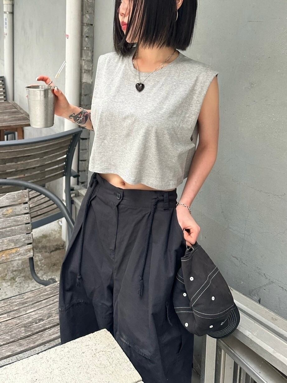 ハイウエストのボトムスと合わせると、スタイルアップが叶います。
